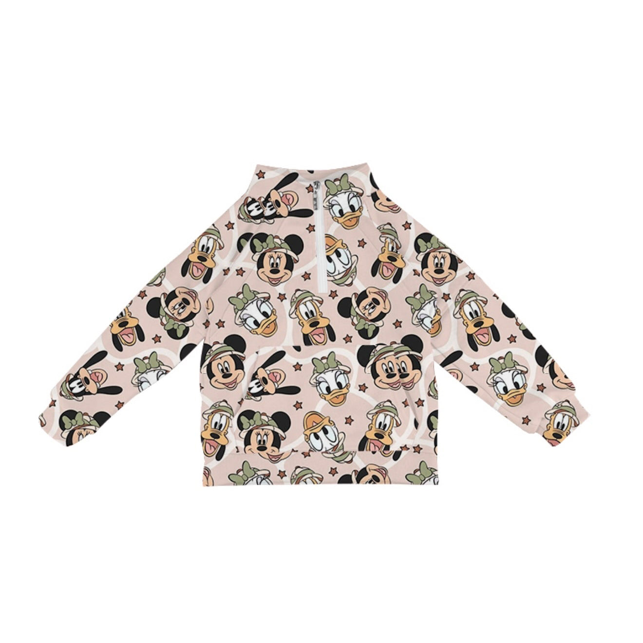 ALL items are made with super soft, buttery athletic wear material. Fit is tts with room to grow. If you are in between sizes we suggest sizing DOWN. This Pullover has an oversized slouchy fit, half zip and front pocket.