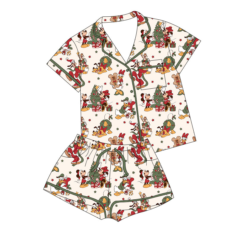 Luxe bamboo lounge sets perfect for a morning of getting ready before rope drop, lobby coffee run or matching with your favorite mini. All lounge sets come with matching top and bottom. Top is button down and features a collar. The shorts have a functional drawstring and pockets.